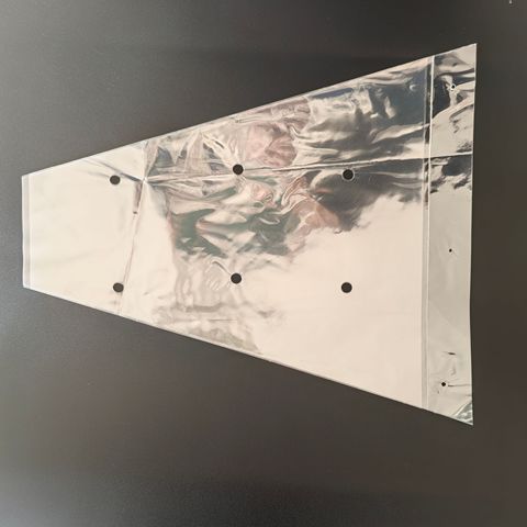 Yüksek kaliteli şeffaf plastik trapez tasarım hava delikleri çiçek kol LDPE/PP/gravür baskı yüzey işleme ile CPP çanta