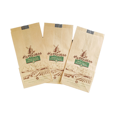 Özel baskı demir kravat dikey kağıt torba gıda sınıfı geri dönüşümlü ekmek dükkanı paket çanta