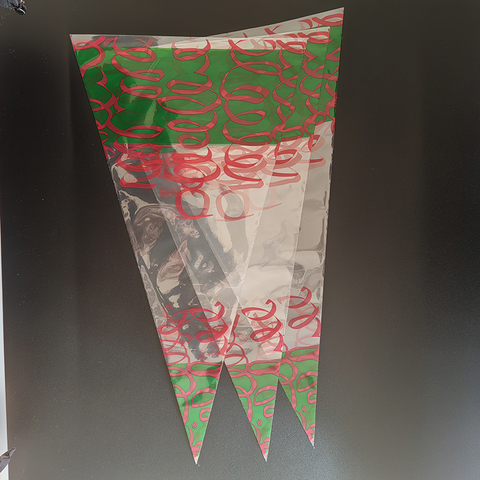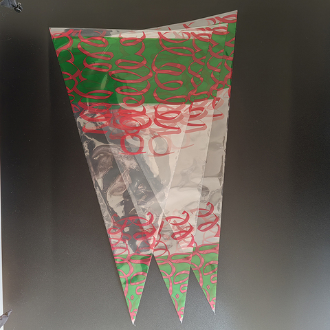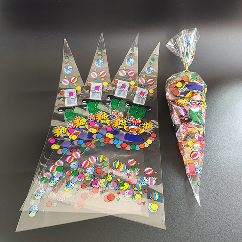 Bolsa de plástico con forma de V de la mejor calidad, transparente, OPP, CPP, celofán, cono triangular, embalaje de dulces